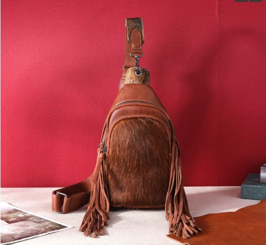 Montana West Genuine Hair-On Cowhide Fringe Sling Bag