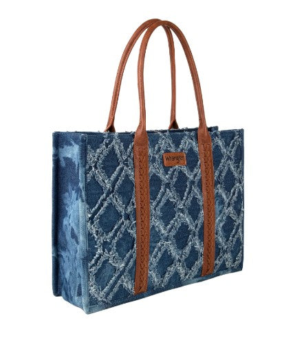 Wrangler Ladies Frayed Fringe Dual Sided Canvas Wide Denim Tote Bag