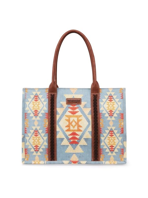 Wrangler Southwestern Pattern Dual Sided Print Canvas Wide Tote - Brown