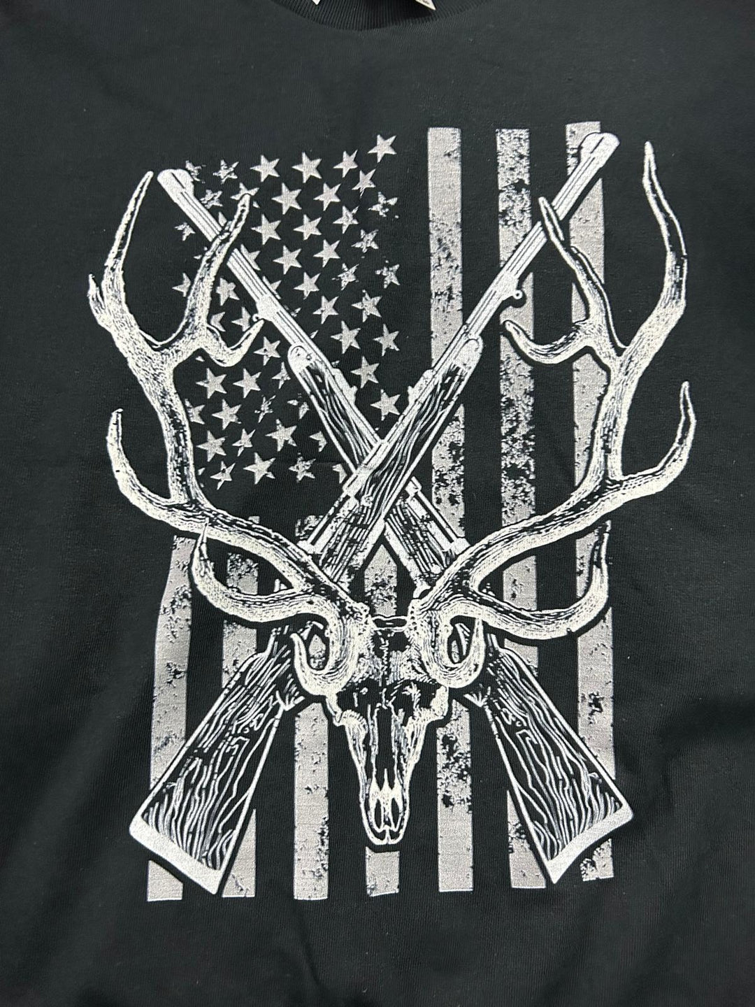 Buck with American Flag Black Short Sleeved T-Shirt